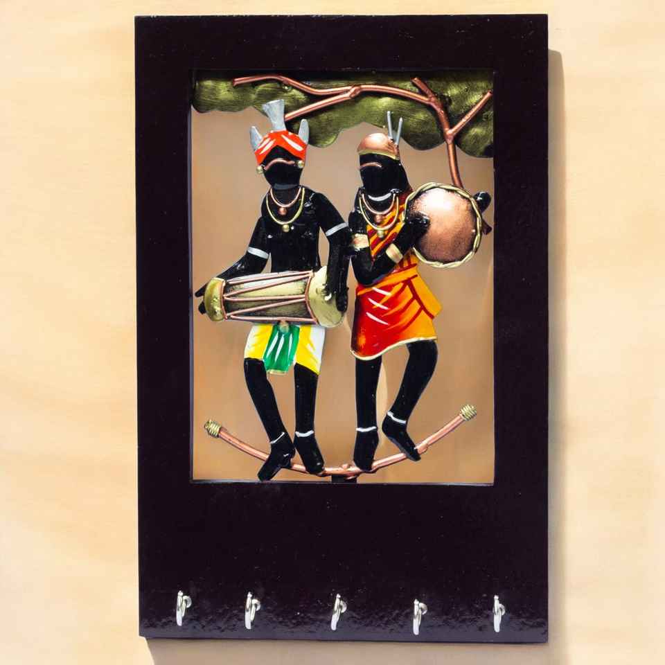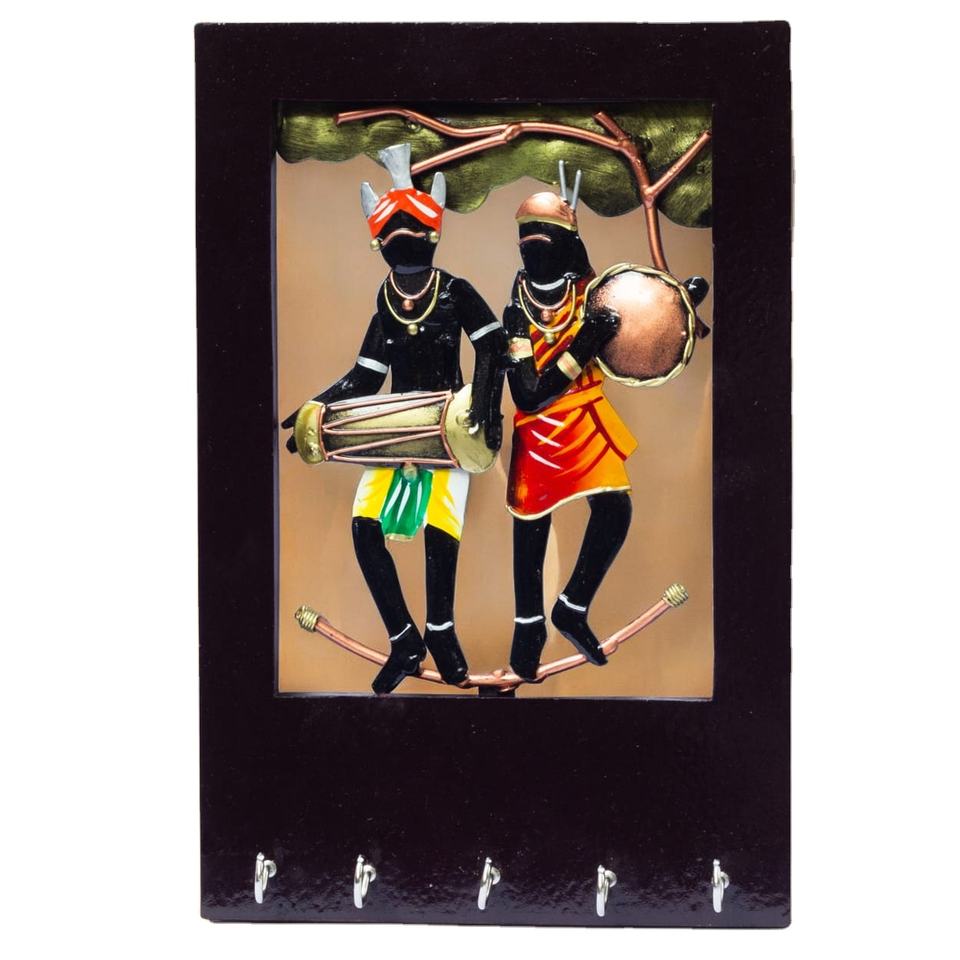 Handcrafted Tribal Musician Iron Key Holder Wall Mounted Frame for Home Office Living Room Decor