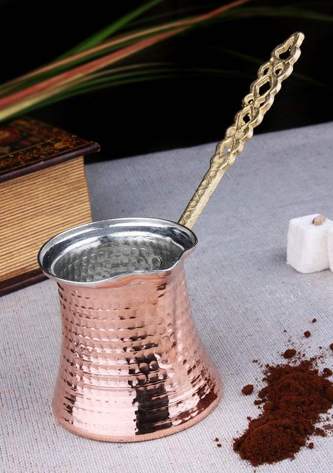 Handcrafted Turkish Copper Coffee Pot Traditional 2025 Design with Ornate Brass Handle for Authentic Brewing & Rich