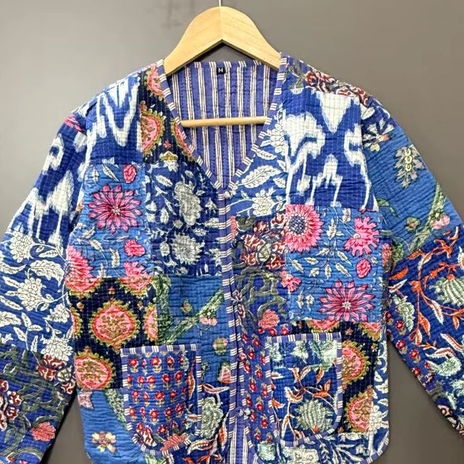 Handcrafted Unisex Cotton Quilted Patchwork Jacket Bohemian Reversible Kantha Kimono Coat Winter Vintage Winter Floral Jacket