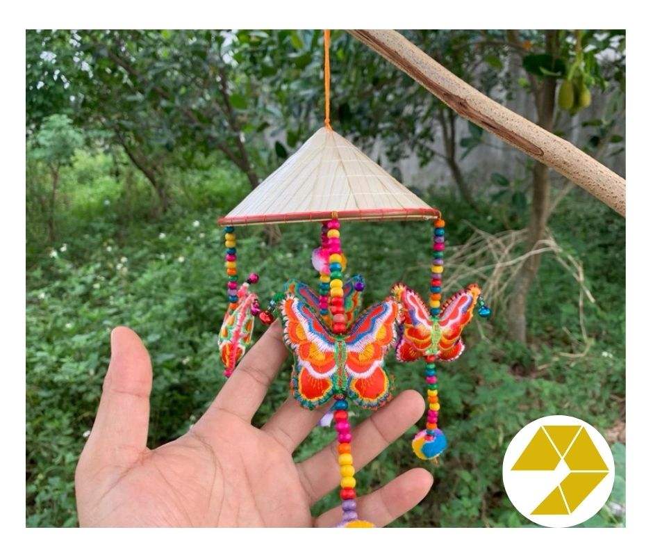 Handcrafted Vietnamese Non La Wind Chimes with Plush Elephants Beads Non La Wind Chimes Boho Decor Art Best Deals Fast Shipping