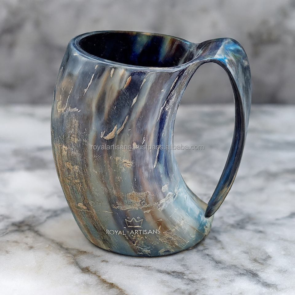 Handcrafted Viking Horn Mug Natural Buffalo Horn Drinkware Medieval Style Beer Cup for Home Bar and Gift Use