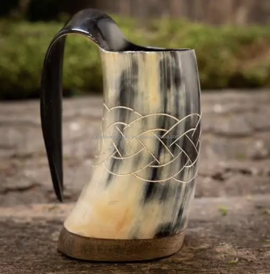 Customized Size Logo Carved Buffalo Horn Tankard Best Quality Hand-Carved Animal Decoration