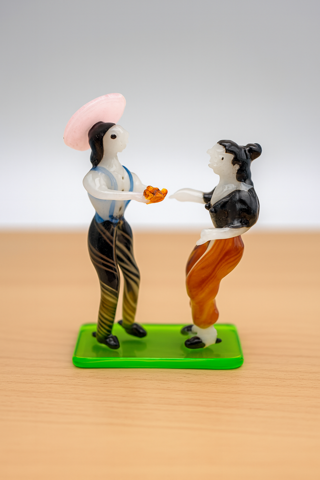 Handcrafted Village Couple Dancing Glass Figurine Authentic Handmade Art Deco Wedding Home Dcor Collectible