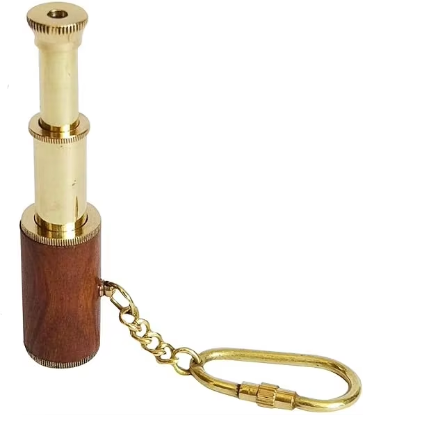 Handcrafted Vintage Brass Pocket Telescope Alluring Outdoor Adventures Wood Box Case Unique Genre Metal Crafts Glass Key Chains