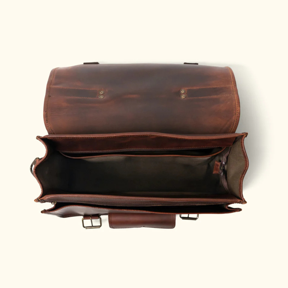Handcrafted Vintage Fashionable Buffalo Leather Cross-Body Messenger Laptop Bag Unisex Office Handbag Chains Genuine Leather