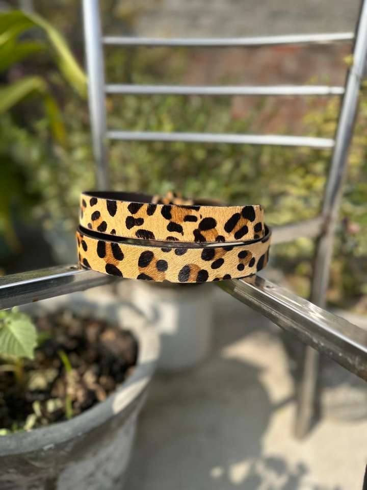 Handcrafted Vintage Heat-Transfer Printed Leopard Hair Finish Belt Heavy Duty Steel Pin Buckle Western Design 1-1.5inches Width