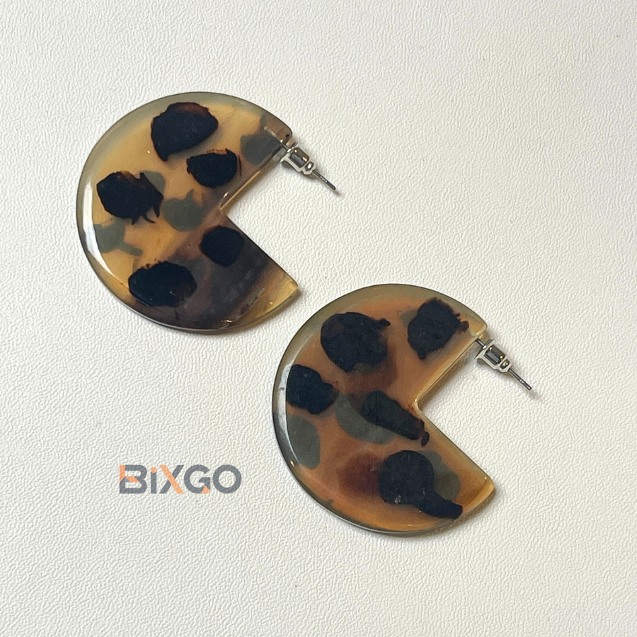 Handcrafted Vintage Lacquer Earrings with Incomplete Design and Light Brown Dots, Custom Wholesale Fashion Accessory Gift