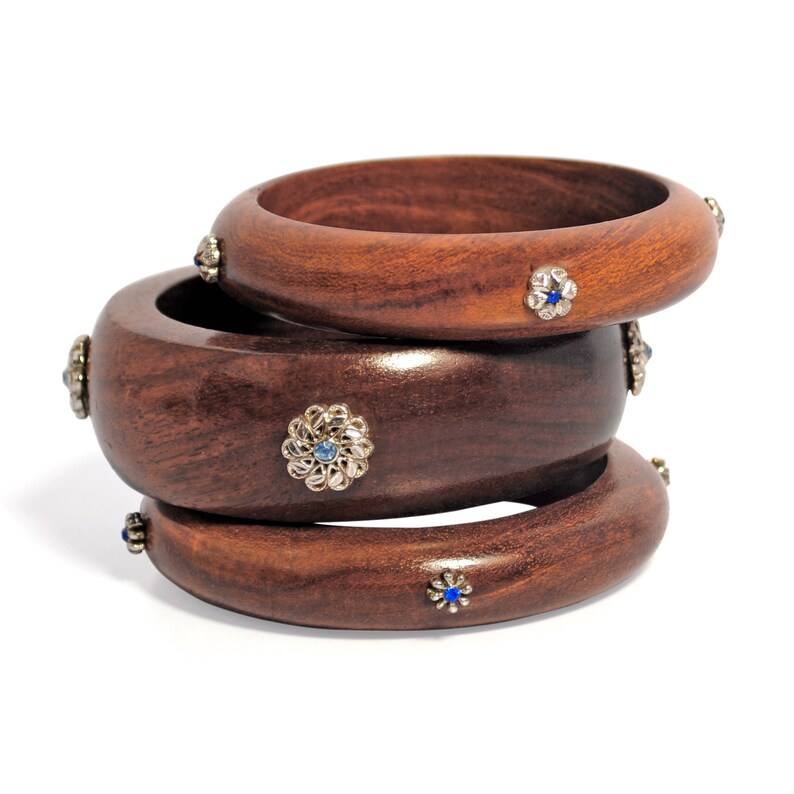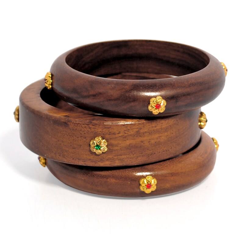 Handcrafted Vintage Sheesham Wood Bangles Gold Floral for Party Jewelry Sisso Saffron Teak Hexagonal Boho Women's