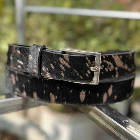 Handcrafted Vintage black Hair on Finish Leather Belt with Heavy Duty Durable Strong Steel Pin Buckle and Western Design