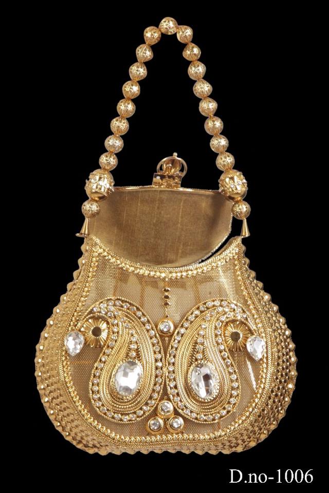 Handcrafted Vivid Ladies Bridal Clutch 1006 Designer Metal Beaded Stone Evening Purses Shoulder/Chain Strap Exclusive Online