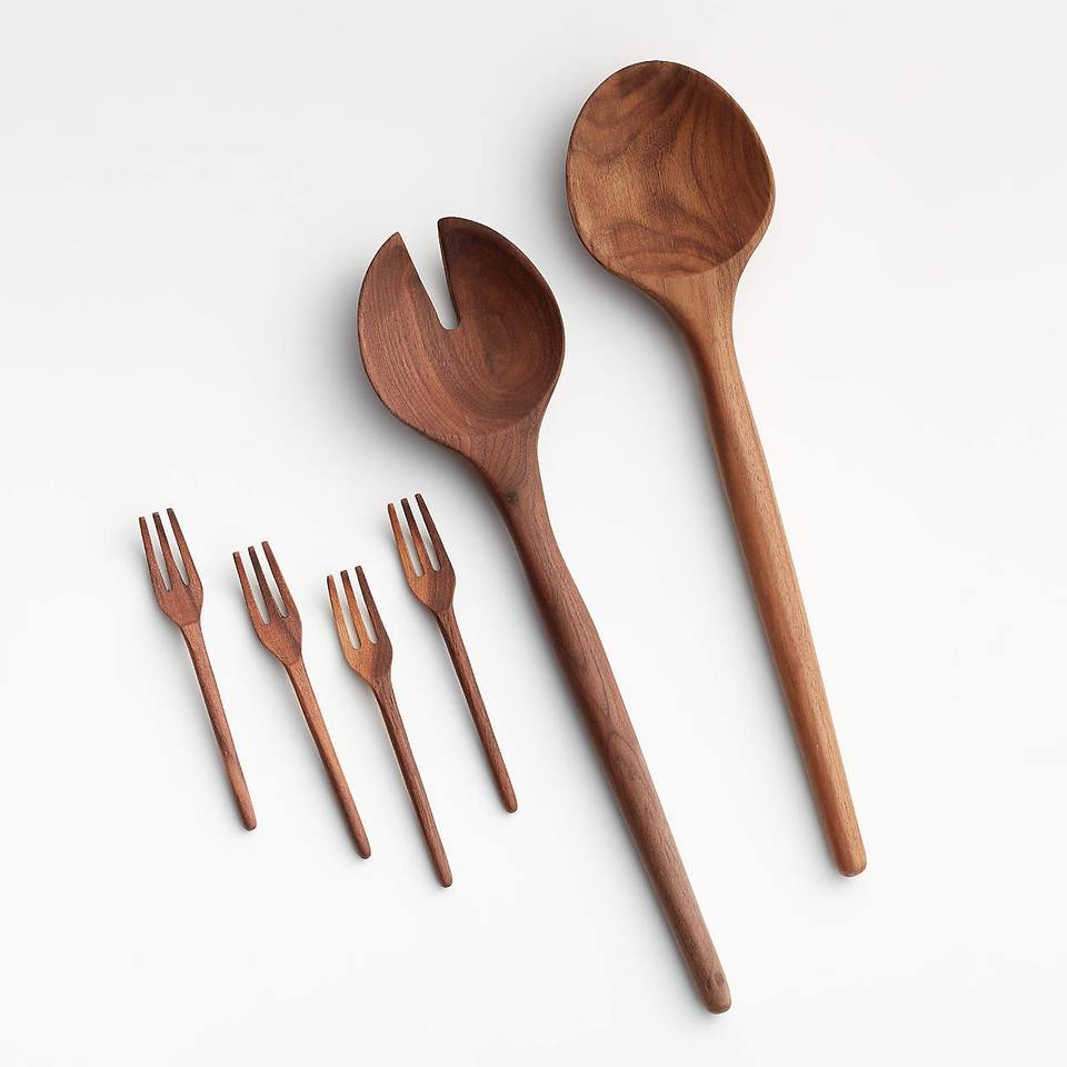 Handcrafted Walnut Salad Server Set Durable Heat Safe Smooth Finish Ideal for Tossing Mixing and Elegant Table Serving