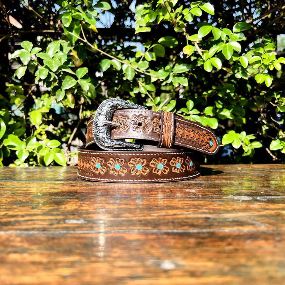 Handcrafted Genuine Leather Western Belt with Tooling Carving Hand Painted Gaucho Life Design Buckle Classic Style New Release