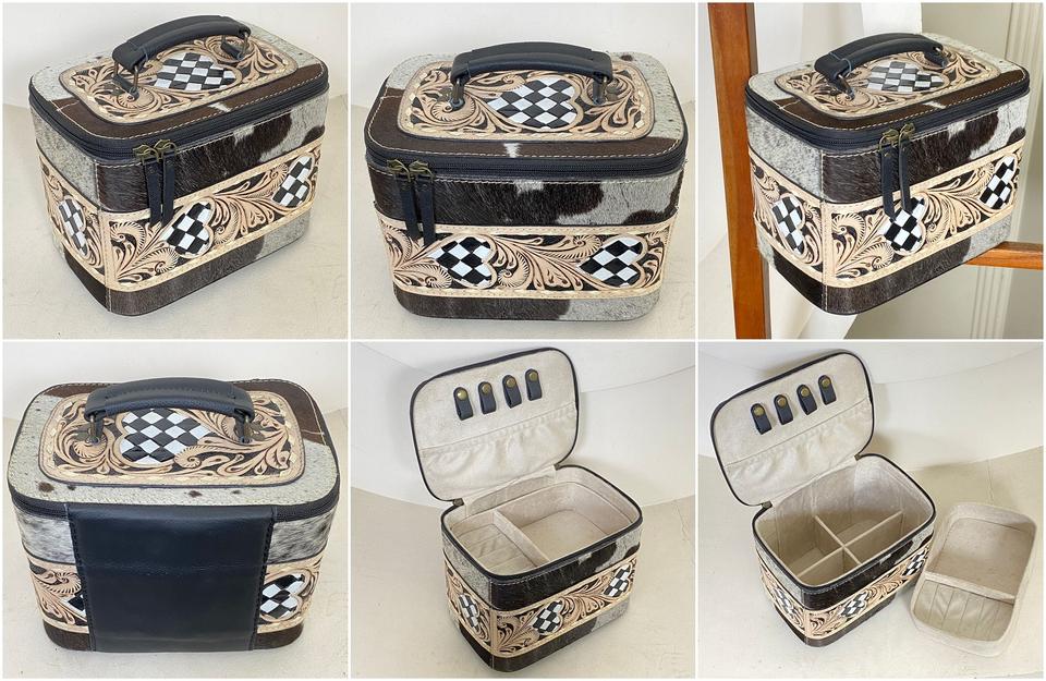 Product name:Hand Tooled Checkered Leather Large Jewelry Case