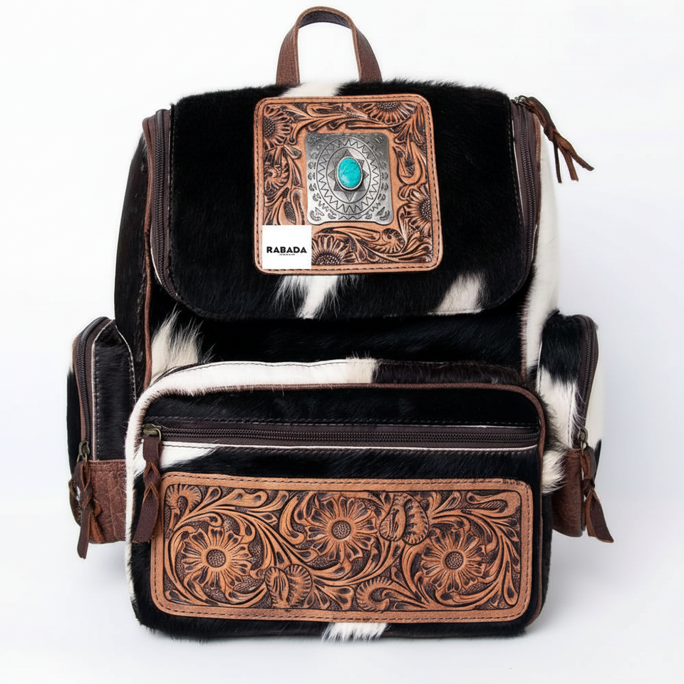 Handcrafted Western Tooled & Cowhide Leather Diaper Bags Stylish Turquoise Stone Bags Wholesale Backpack