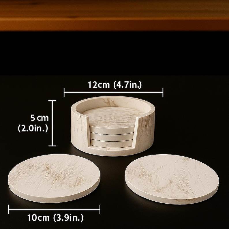Handcrafted White And Gold Marble Drink Coasters With Chic Holder Elegant 4 Piece Coaster Set