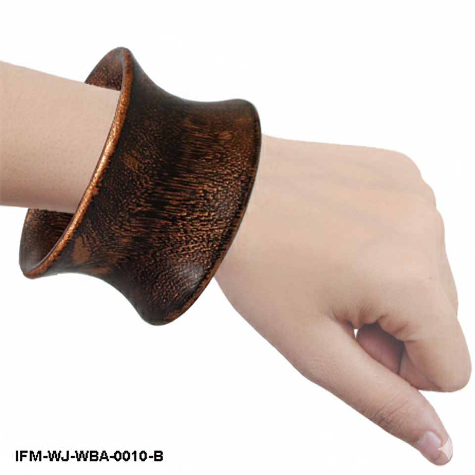 Handcrafted Wide Tapered Wood Bangle Antique Bronze Finish Boho Cuff Bracelet, Statement Ethnic Jewelry