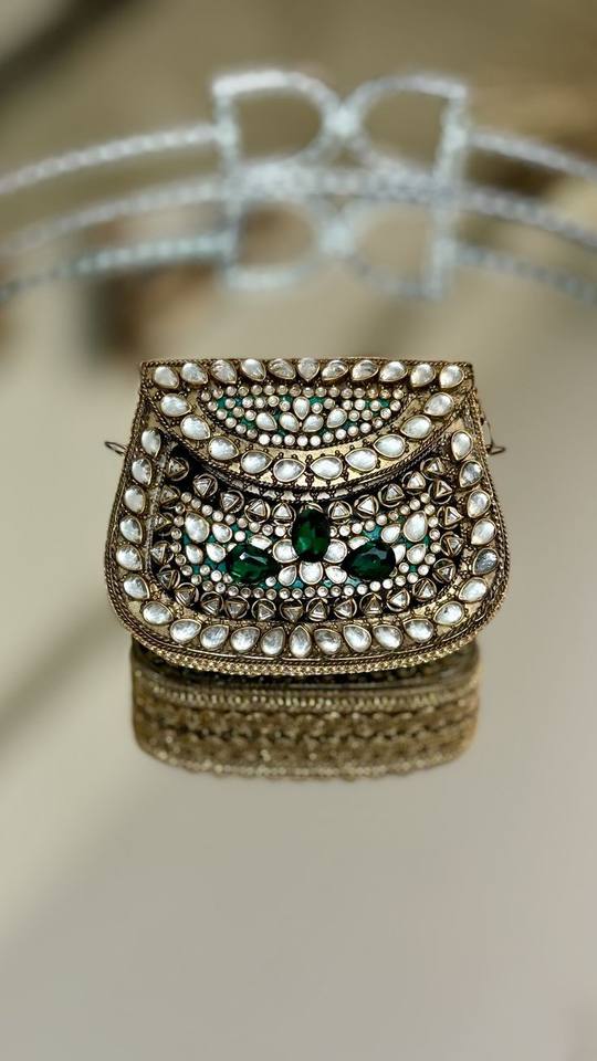 Handcrafted Winter Waterproof Mosaic Clutch Purse with Chip Stone Metal Sling and Letter Decoration Unique Artisan Design