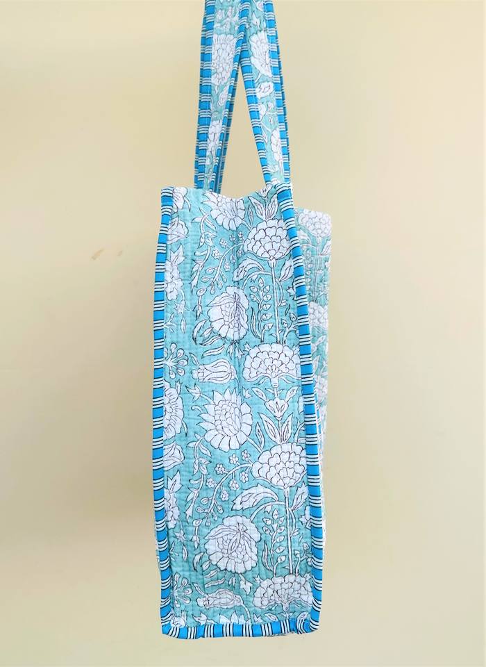 Handcrafted Women's Large Cotton Quilted Tote Shoulder Bag Stylish Block Print Travel Bag with Zipper Closure