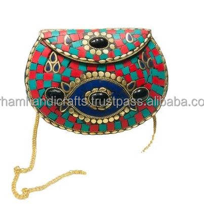 Handcrafted Women's Mosaic Metal Clutch Bag Unique Evening Purse Pearl Chain Decorations Fashion Statement for Special Events