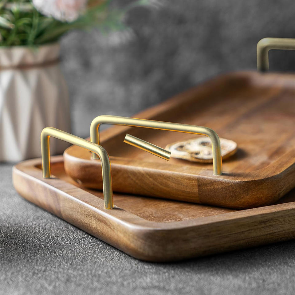 Product Name:Wood Serving Tray with Metal Handles l Set of 2