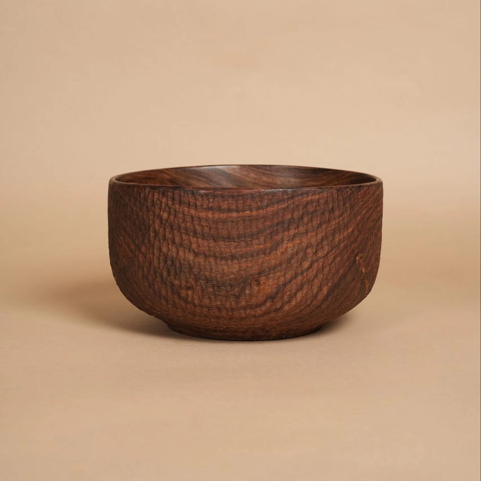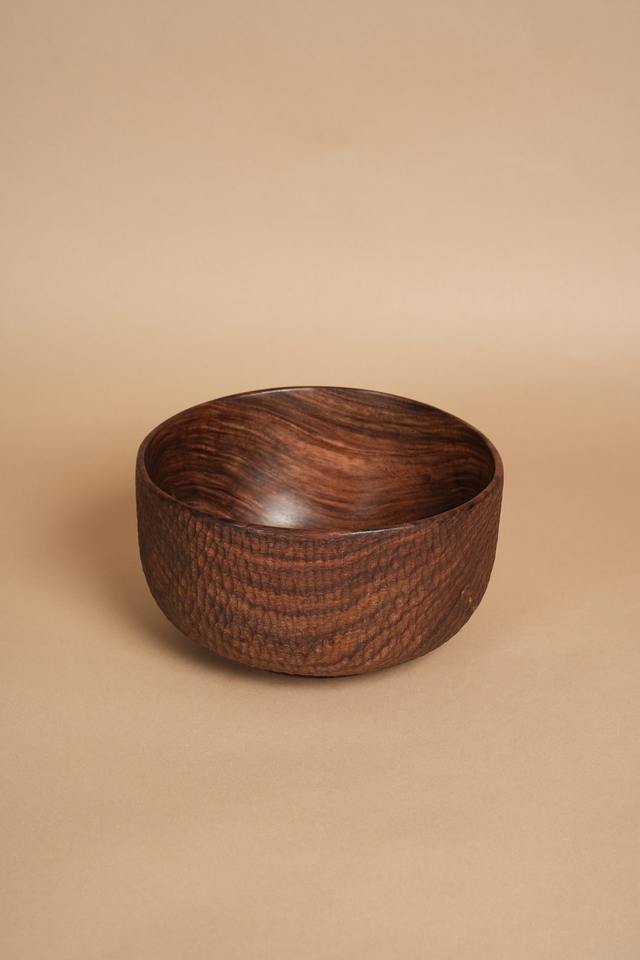 Handcrafted Wooden Bowl with Textured Finish Natural Brown Color Perfect for Serving or Decor Sustainable Wooden Tableware