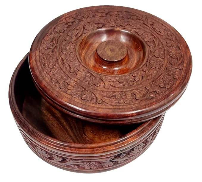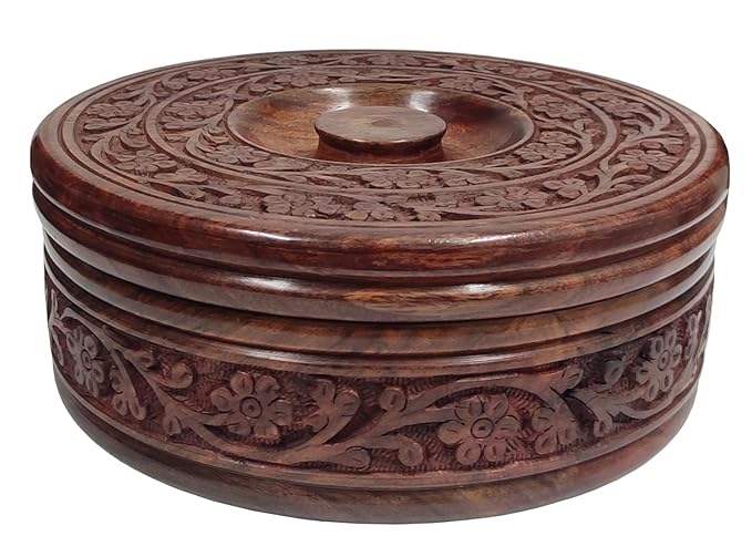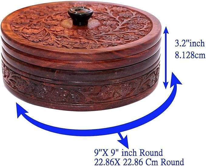 Handcrafted Wooden Chapati Box for Decorative Roti Storage Colorful Printed Lid with Polished Finished Decoration