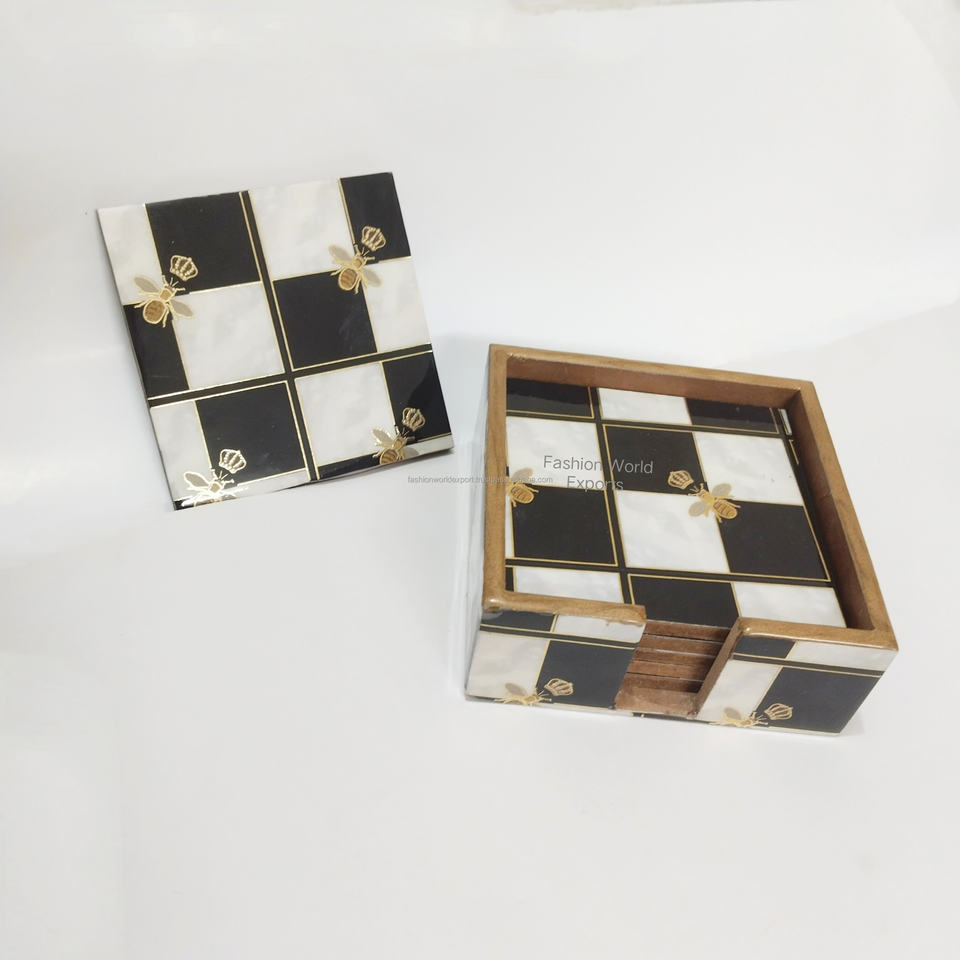 Handcrafted Wooden Coaster Set with Holder Royal Peacock Garden Artwork Drink Coasters Decorative Tea Coffee Coasters for Dining
