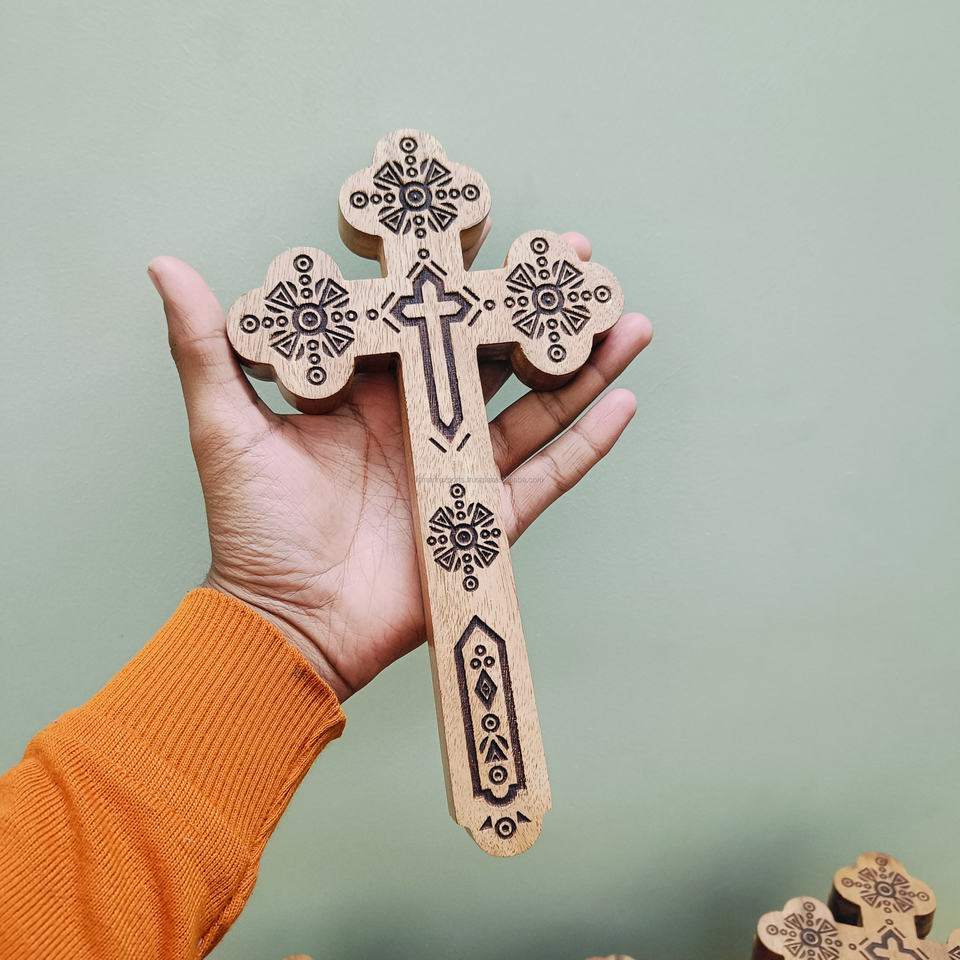 Handcrafted Wooden Cross Engraved Religious Wall Hanging Spiritual Art Elegant Home Decor Gift for Living Room
