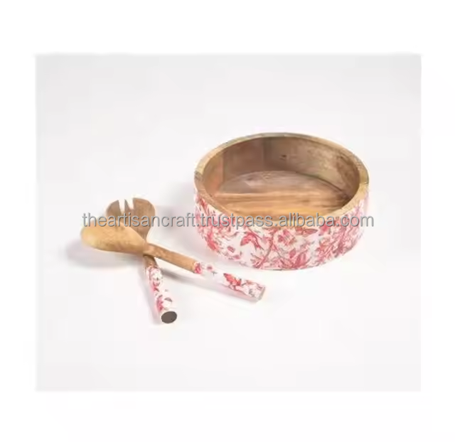 Handcrafted Wooden Enamel Printed Bowl Decorative and Functional Serving Bowl Ideal for Snacks Salads and Home by Artisan Craft