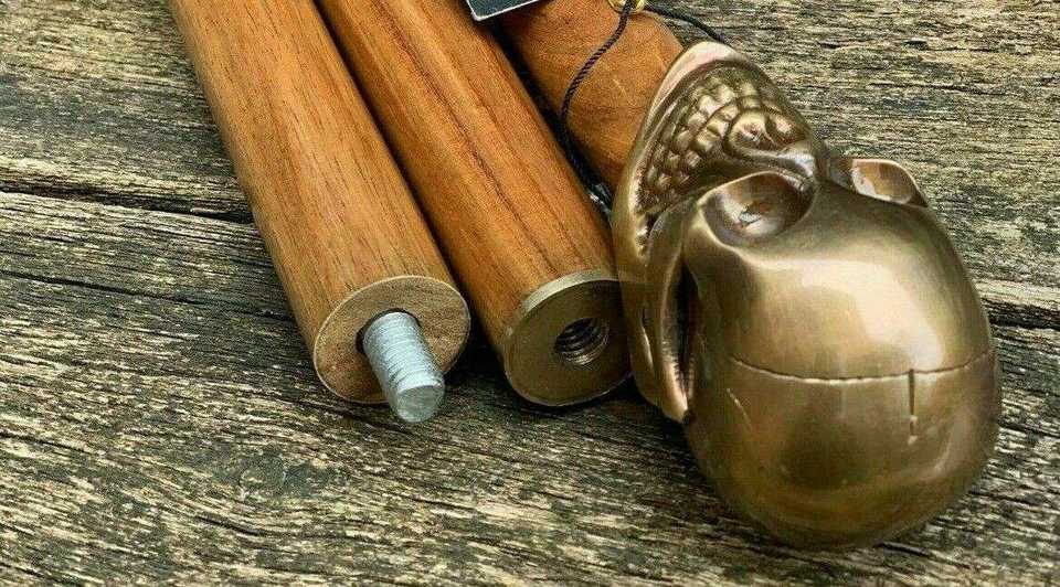 Handcrafted Wooden Folding Walking Stick with Brass Handle Steampunk Vintage Decorative Cane for Cosplay Halloween Gift