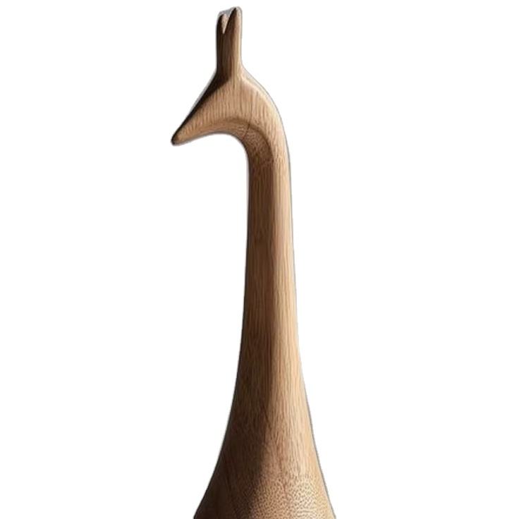 Handcrafted Wooden Giraffe Figurine Long Neck Animal Sculpture Minimalist Wooden Giraffe Statue Nordic Decorative Wood Ornament