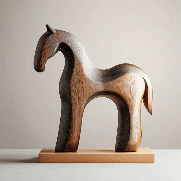 Handcrafted Wooden Horse Figurine Rustic Animal Statue Minimalist Wooden Horse Sculpture Nordic Style Home Decor Table Ornament