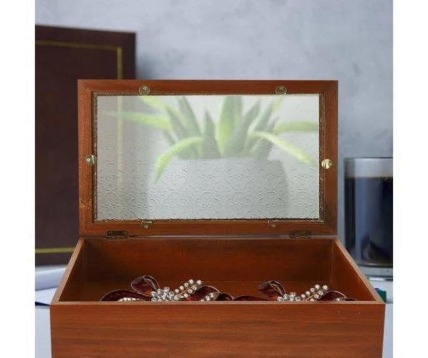 Handcrafted Wooden Jewelry Storage Display Case with Clear Glass Lid for Rings Necklaces & Cosmetics-Stylish Holiday Gift Box