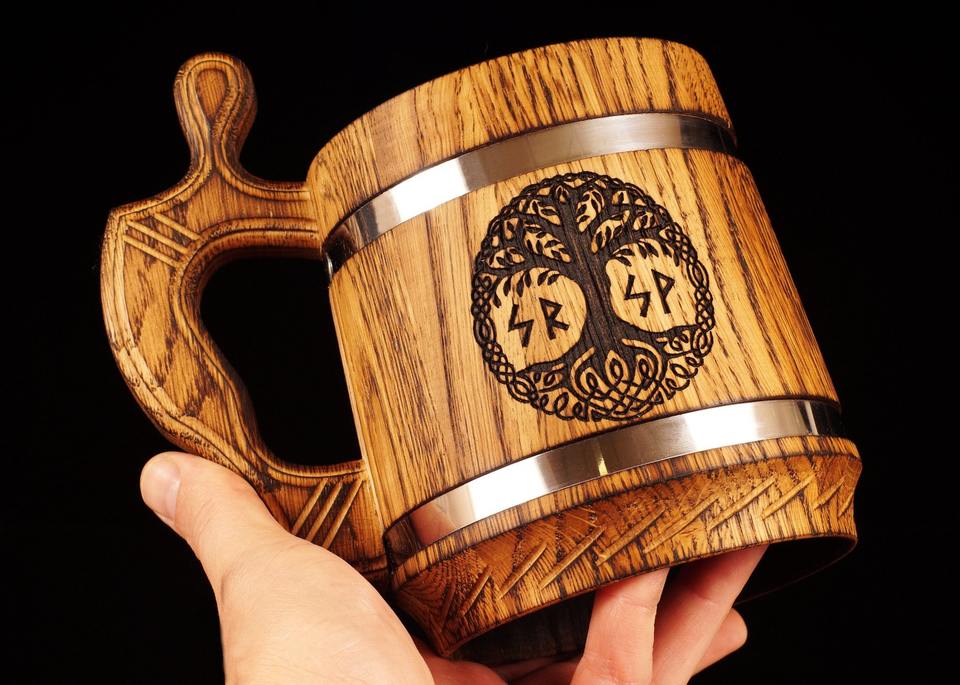 Handcrafted Wooden Mug Rustic Natural Drinking Cup Perfect for Coffee Tea or Beer Ideal for Camping Outdoor Use and Unique Gifts