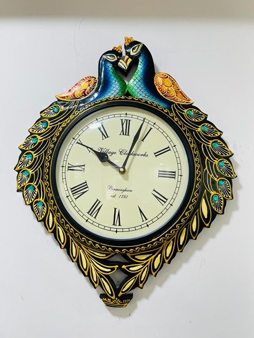 SwamiG TradeX Handcrafted Wooden Peacock Design Art Deco Decorative Wall Clock with Quartz Movement Made in India