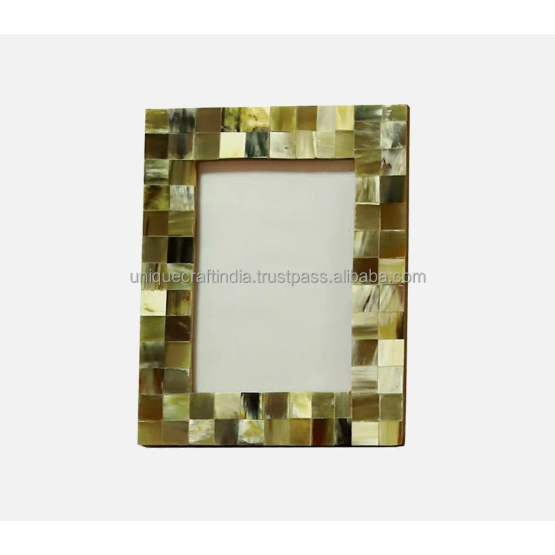 Handcrafted Wooden Photo Frame with Olive Gold Shell Resin Mosaic Elegant Home Decor
