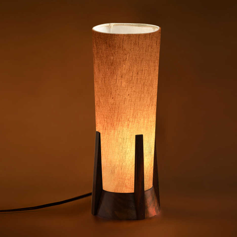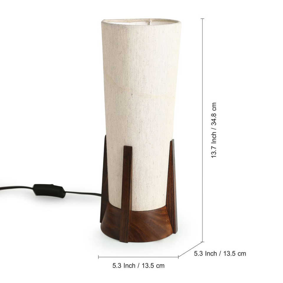 Material:BASE: Sheesham Wood, SHADE: Cotton Cloth Wrapped Over Polyvinyl