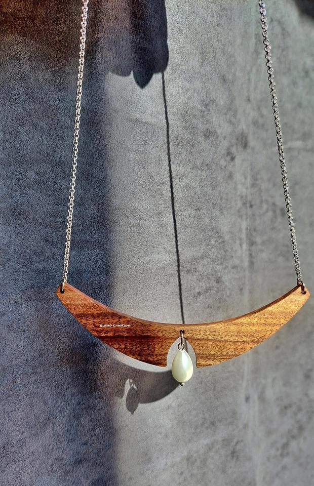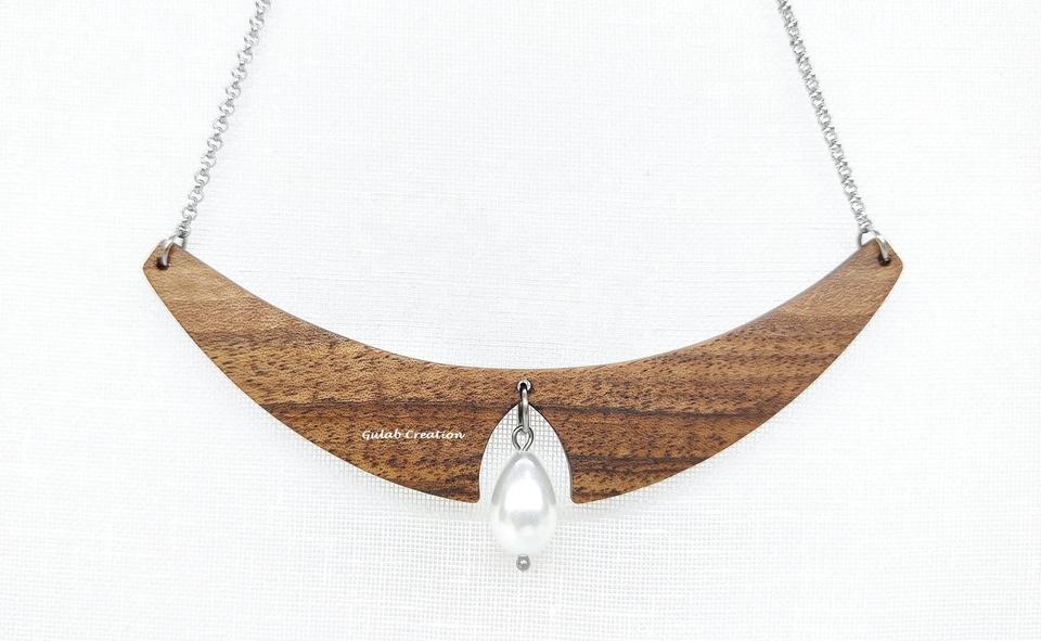Handcrafted Wooden Statement Collar Necklace for Women Elegant Pearl Detailing Classic Boho Fashion Accessories