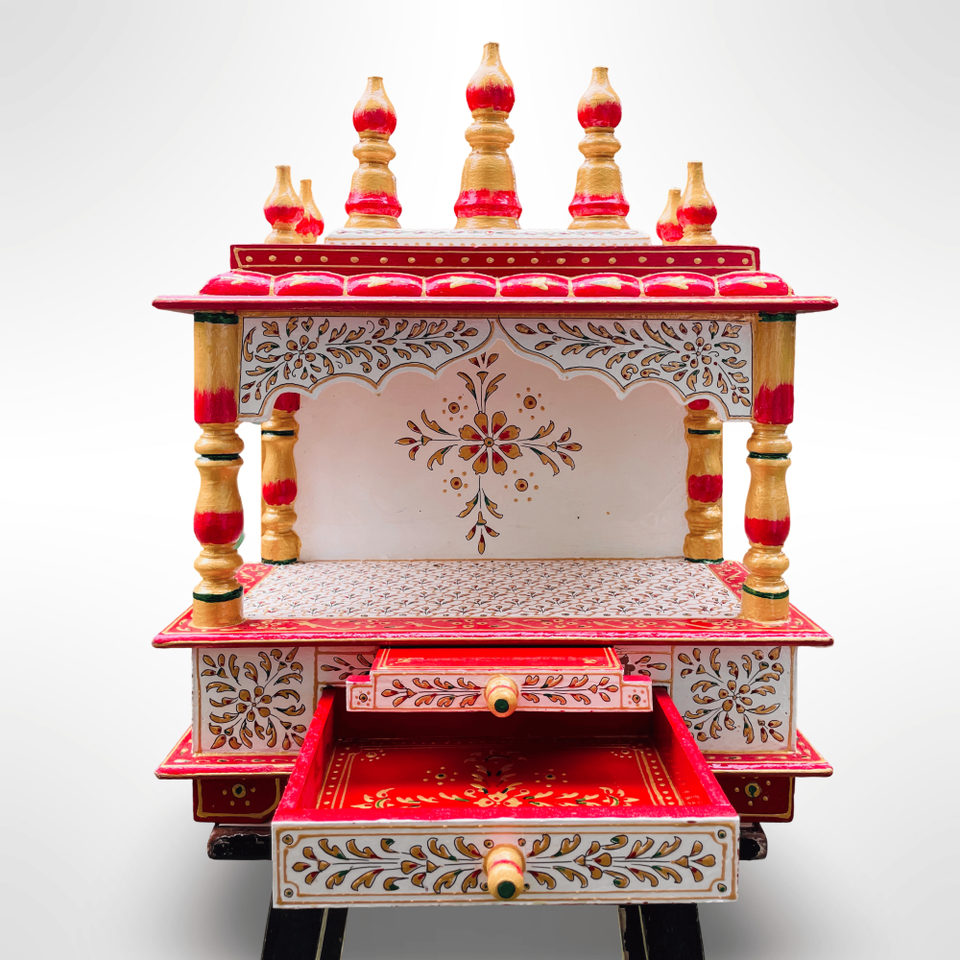 Product Name:Handcrafted Wooden Temple Mandir with Drawers