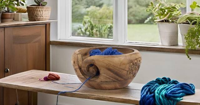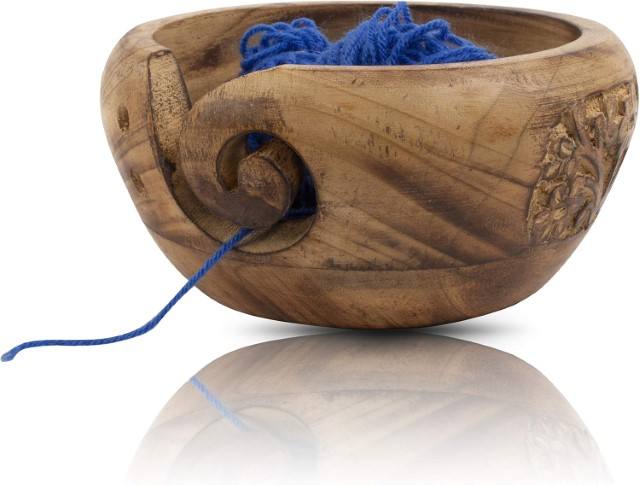 Handcrafted Wooden Yarn Bowl Knitting Crochet Holder Portable Lightweight Wool Storage Organizer Natural Wood Grain Thread