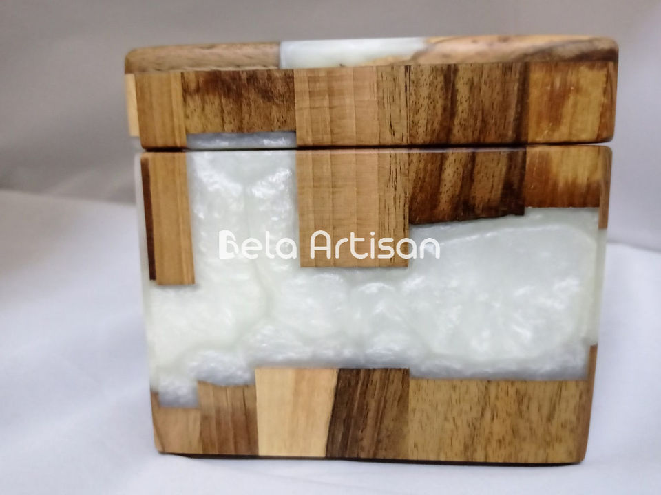 Handcrafted Wooden and Resin Jewelry Box Decorative White Resin Inlay Keepsake Storage Chest