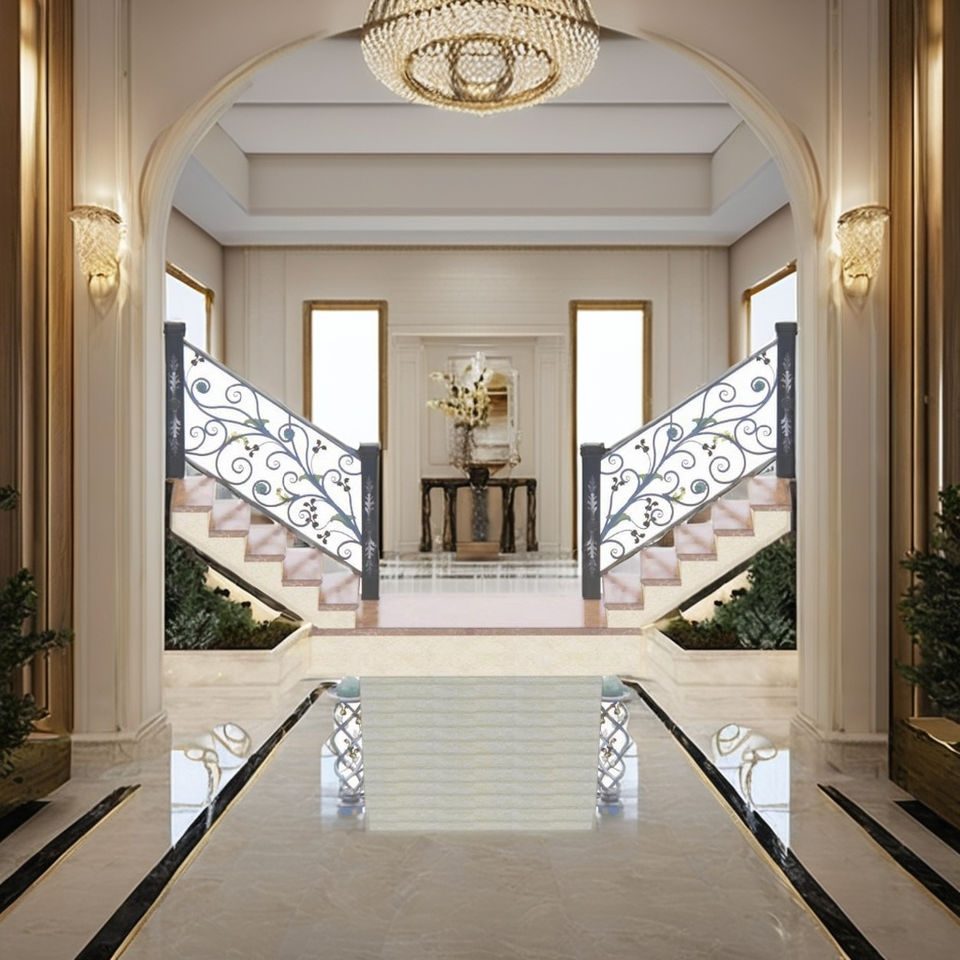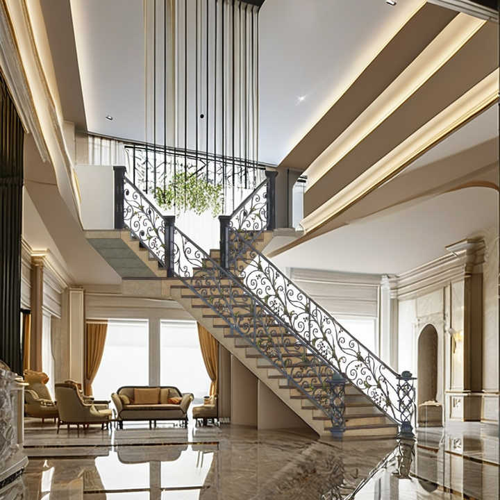 Handcrafted Wrought Iron Stair Rails Balcony Railings Elegant Design Premium Powder Coating Rust Resistant for Villa Modern