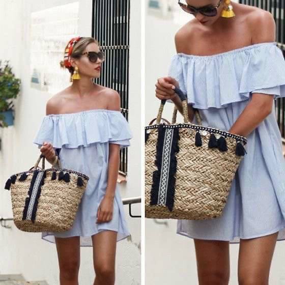 Handcrafted Eco Friendly Natural Sedge Grass Women's Basket Two Handles Open Closure Floral Delicate Yarn Patterns Elegant