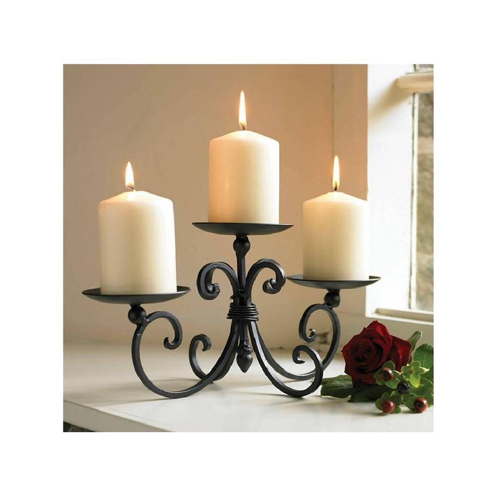 Handcrafted metal candle holder set with refined styling perfect for living room dining table bedroom and festive decor