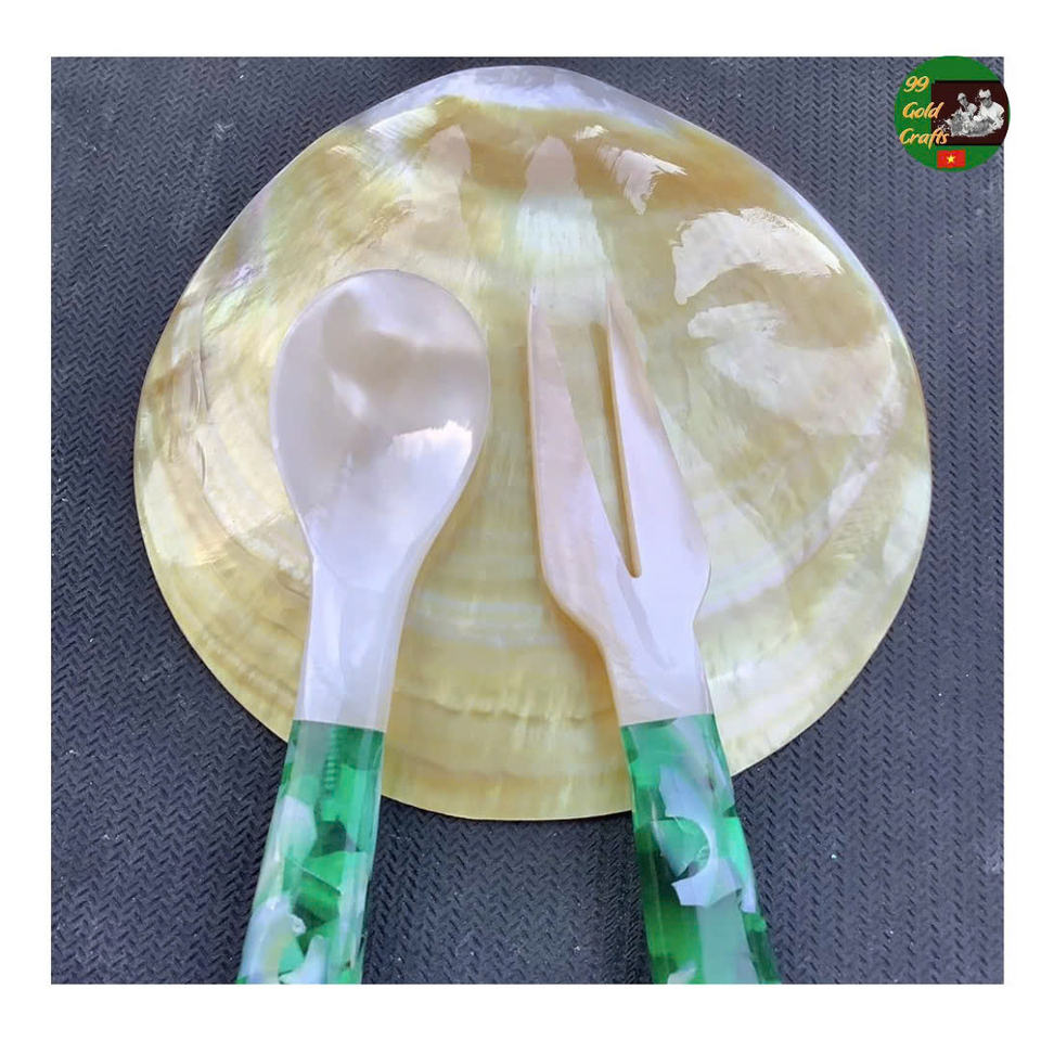 Handcrafted mother of pearl spoon and dish, elegant plate for soap storage Mother Of Pearl Plate For Premium Table Settings