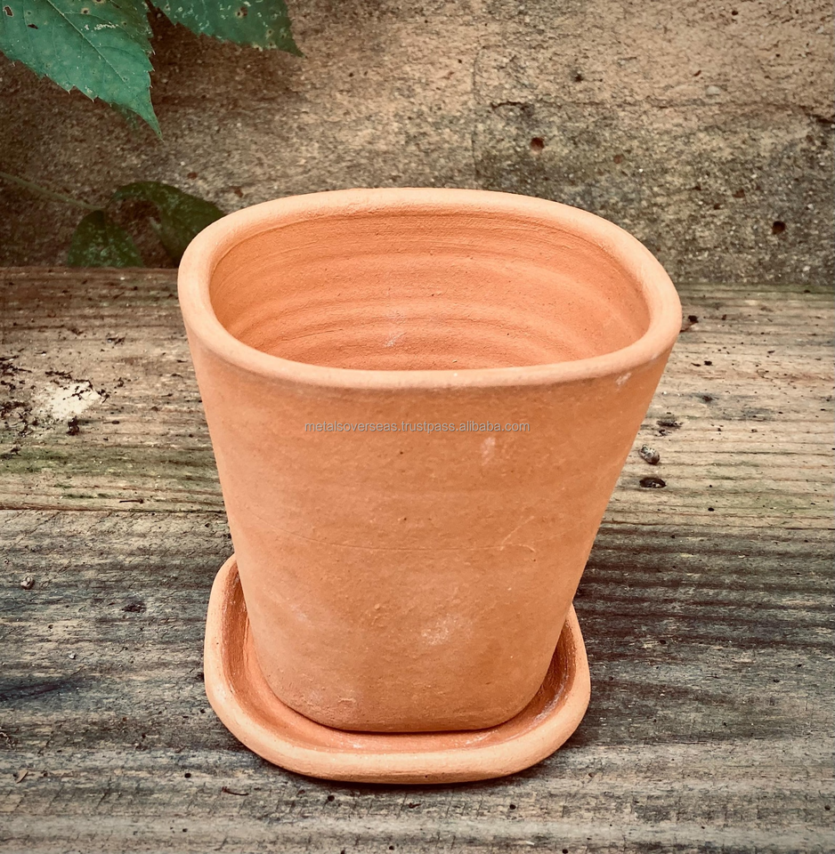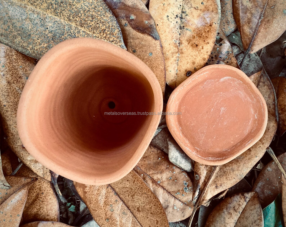 Handcrafted natural terracotta flower pot for indoor and outdoor clay plant pot with drainage hole and matching saucer