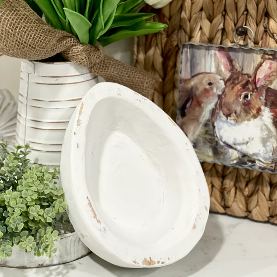 Handcrafted natural wooden Egg shaped dough bowl for candle key holder wholesale dough bowl Easter gift from Vietnam factory