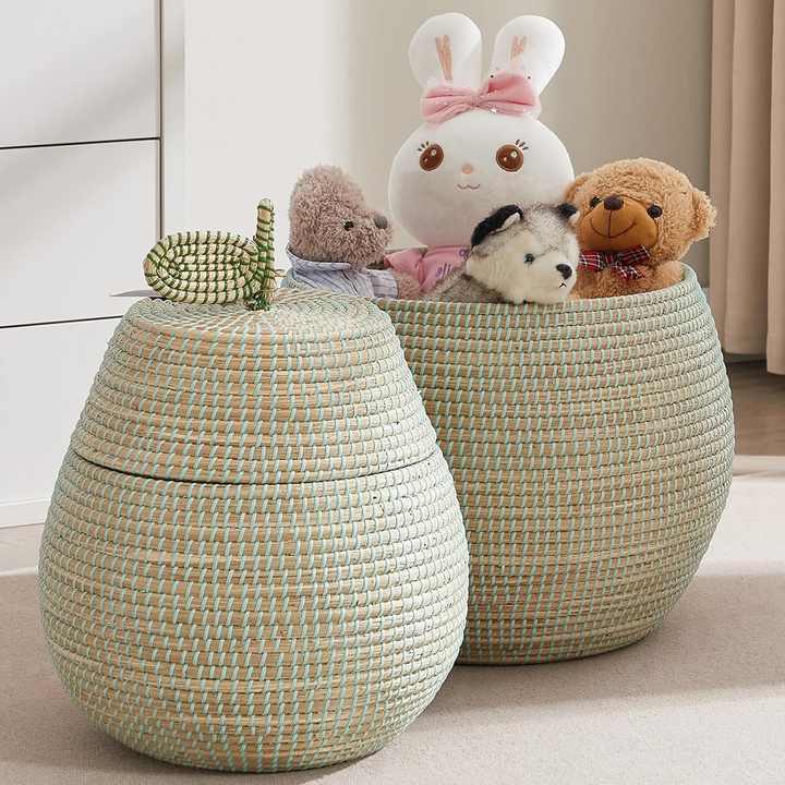 Handcrafted seagrass basket set home style storage pieces natural sea grass raffia fruit shape baskets