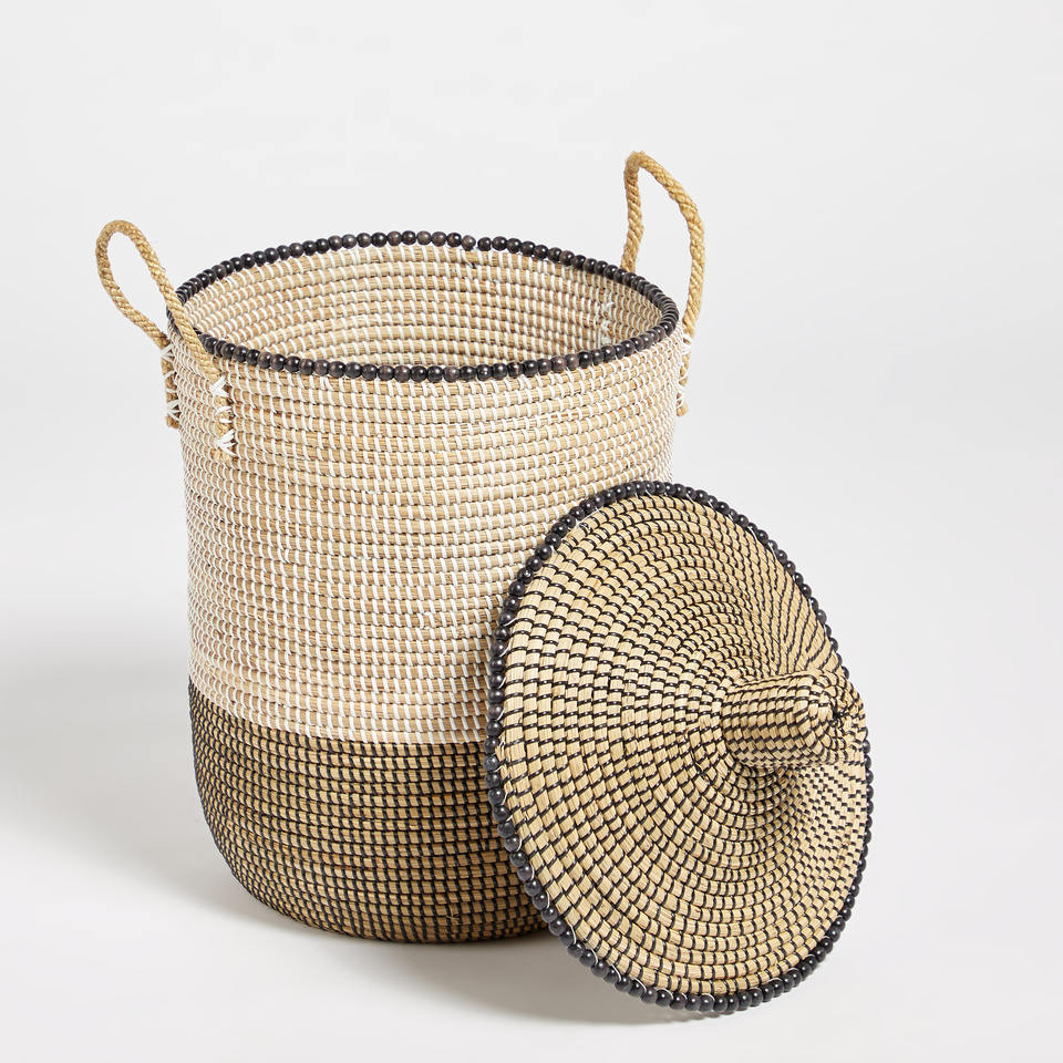 Handcrafted seagrass bin basket bedroom living room storage organizing cylindrical sea grass bins