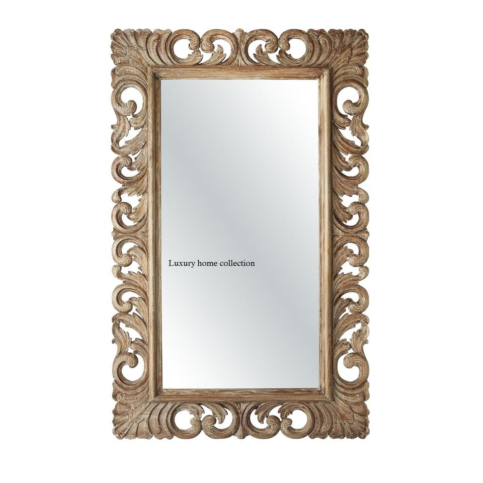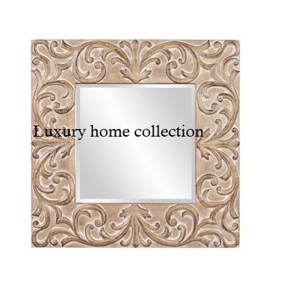 Handcrafted vintage style wooden mirror frame for rustic home decor with elegant detailing and antique wood design